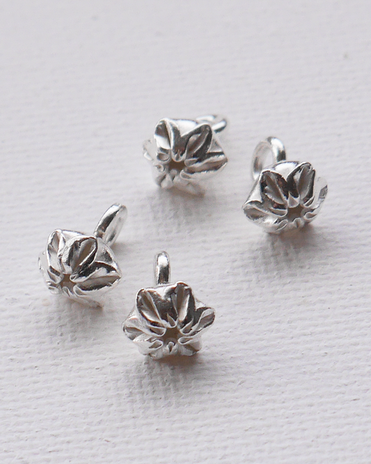 KSB131 カレンシルバー ビーズ ギャザーフラワー下向きチャーム 4Pcs