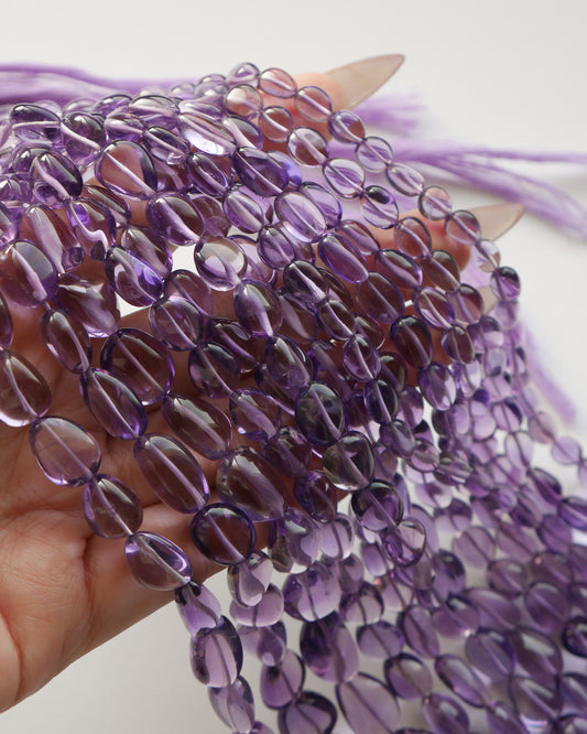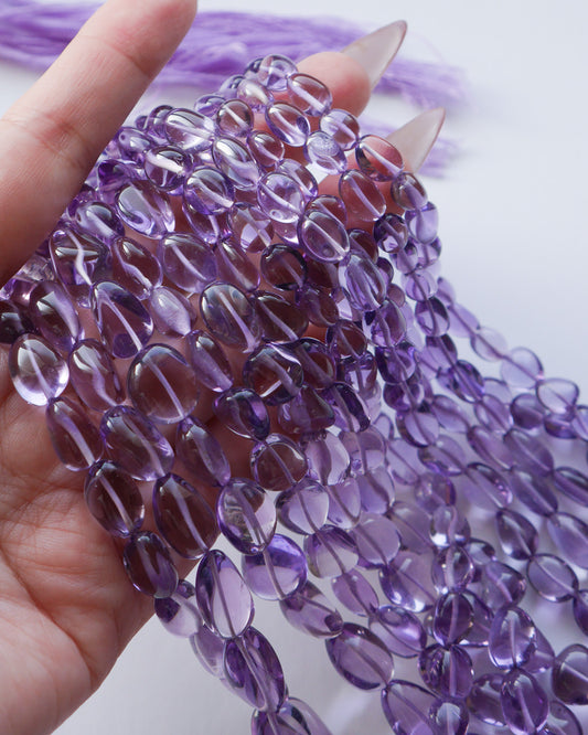 宝石質 アフリカンアメシスト スムースタンブル ライトカラー 1連