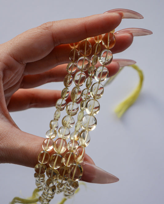 宝石質 スキャポライト スムースオーバル ライトイエロー 1連