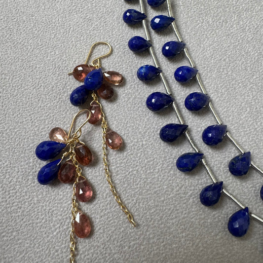 高品質 ラピスラズリ ファセットドロップ ブリオレット 1連