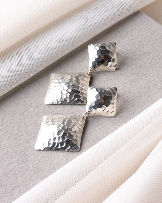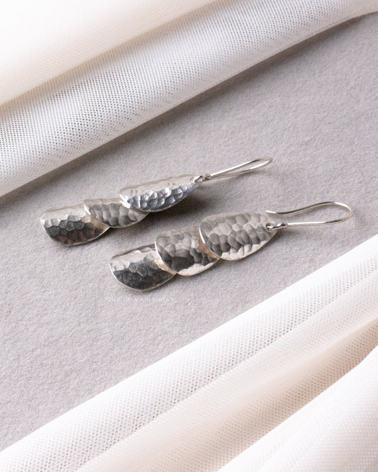 KSE28 カレンシルバー ピアス<ハンマード 3連ドロップ>