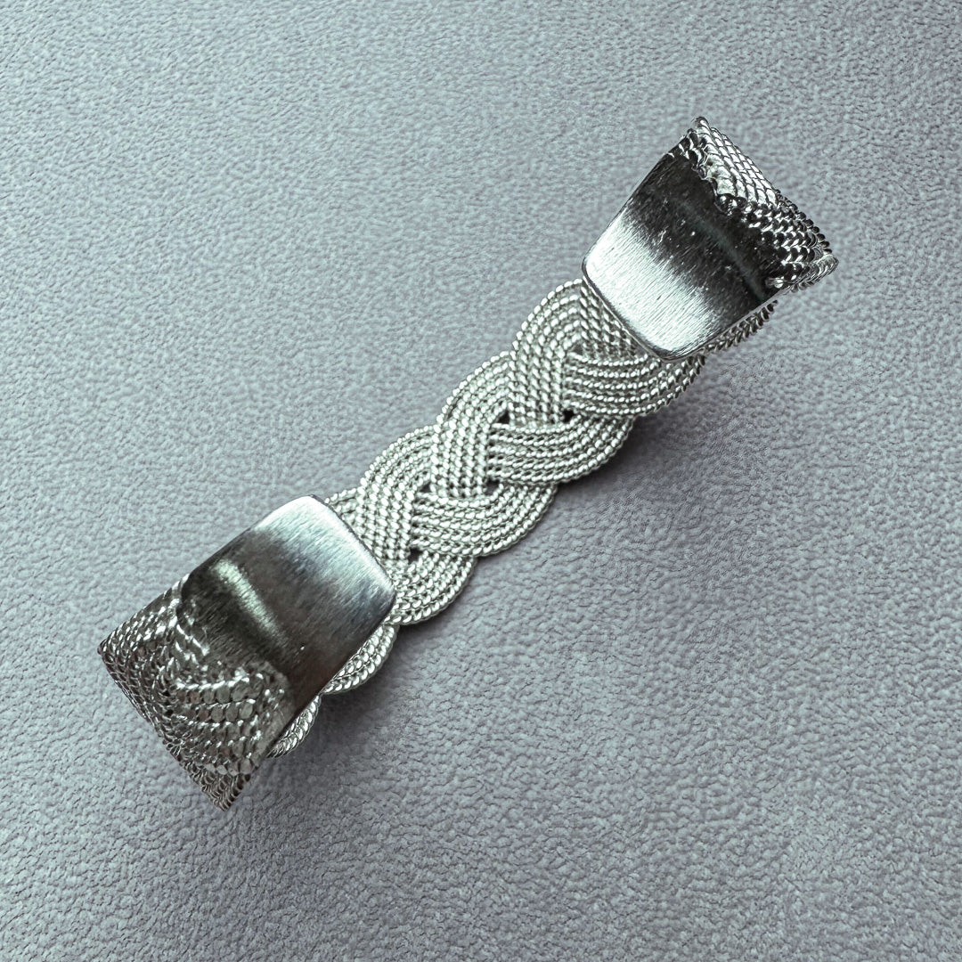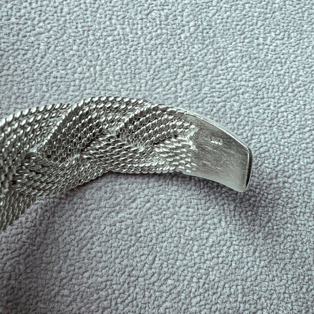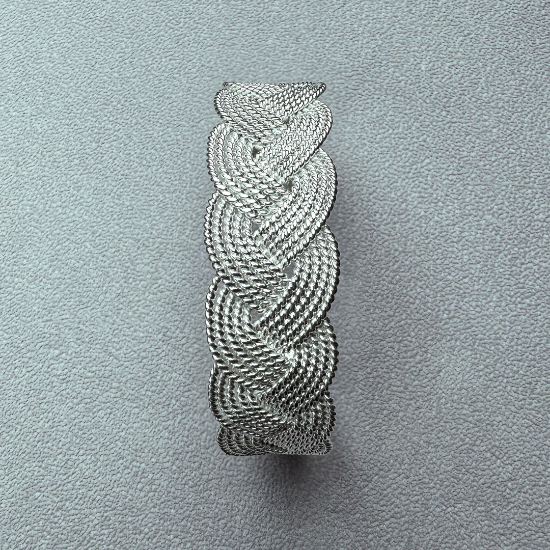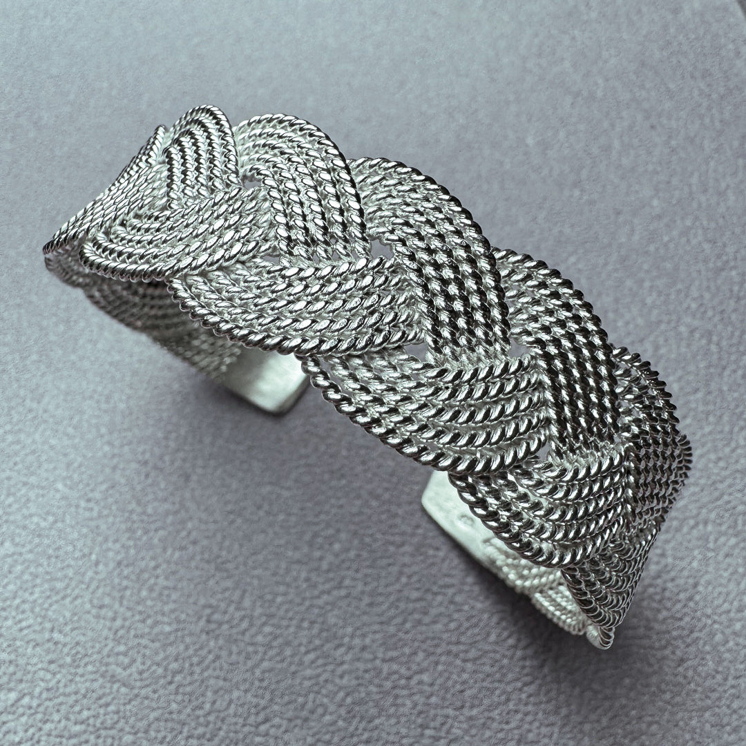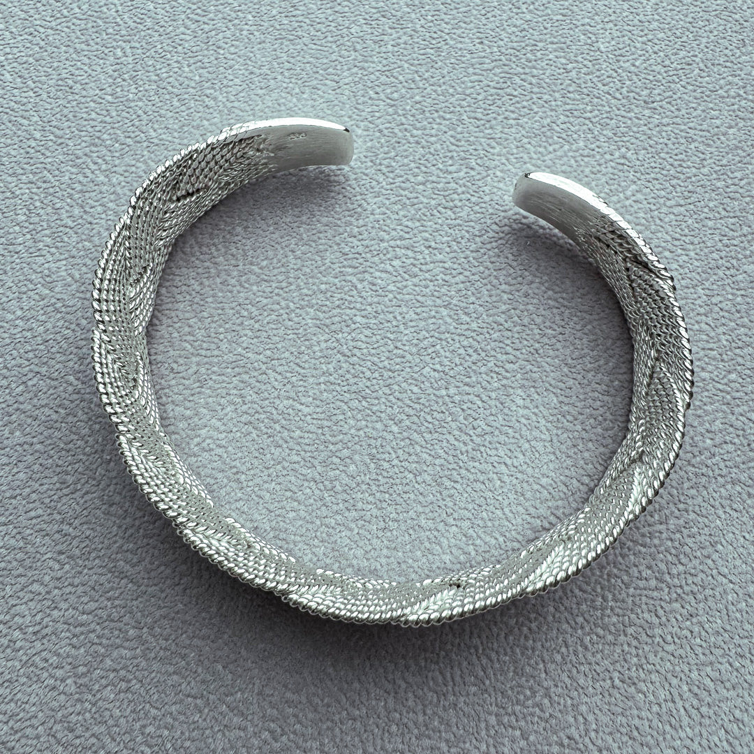 高純度の銀線を編上げたロープバングルは