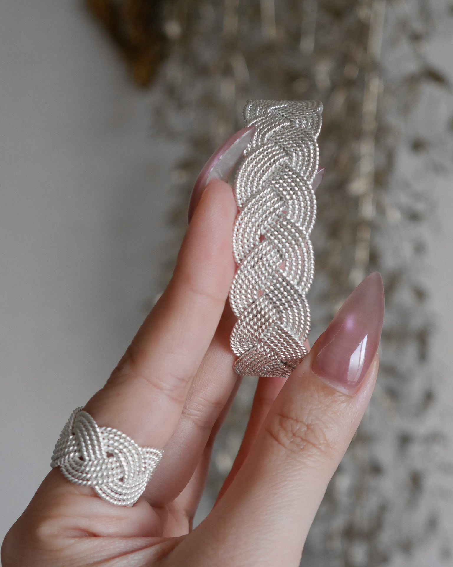 同じ工房で制作いただいた編み込みデザインで